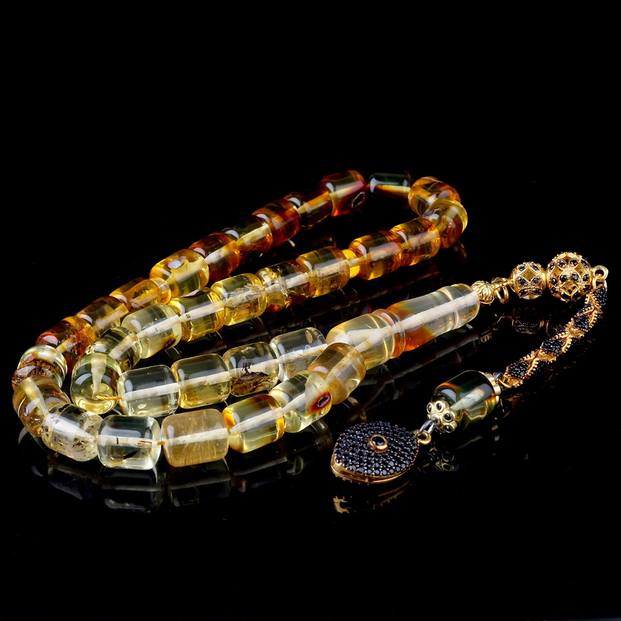 Kapsül Kesim Damla Kehribar Tesbih Zirkon Taş Gümüş Püsküllü Hakkında