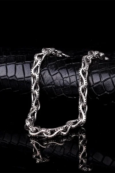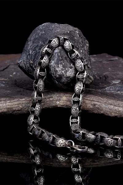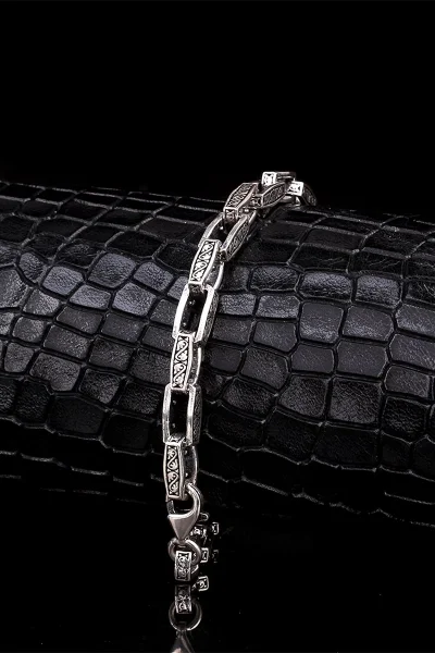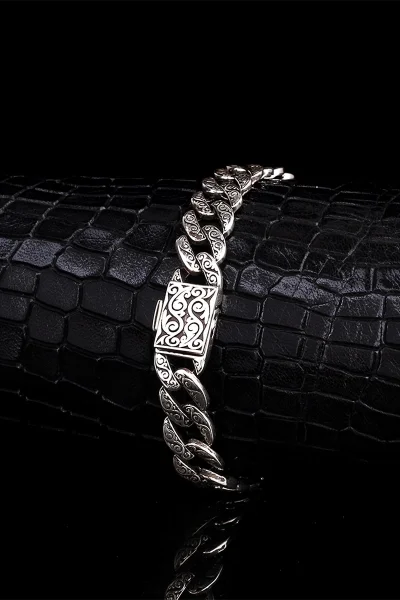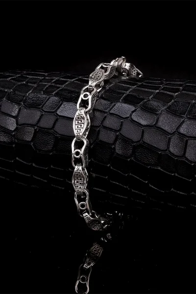 925 Ayar Gümüş Desen Motifli Erkek Bileklik