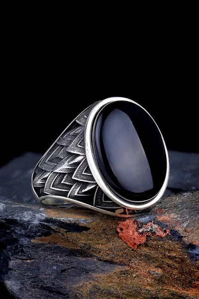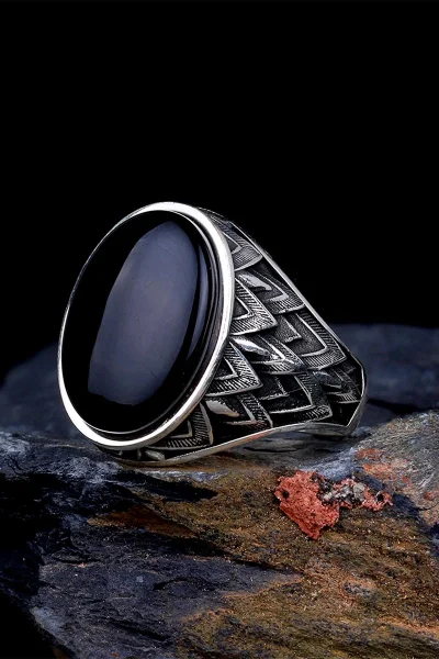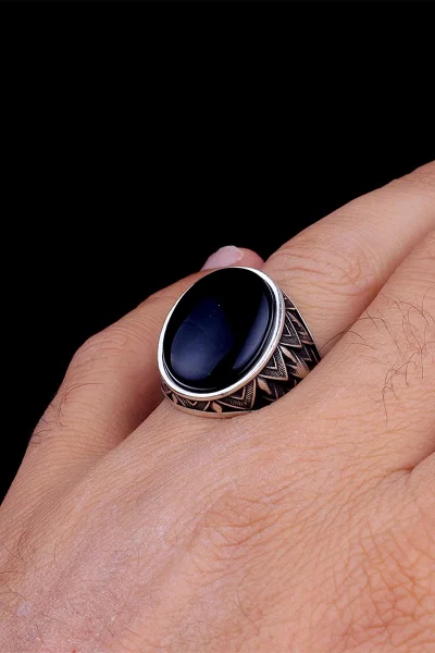 925 Ayar Gümüş Onix Taşlı Oval Model Erkek Yüzük