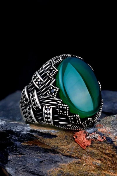 Akik Taşlı Oval Model 925 Ayar Gümüş Erkek Yüzük
