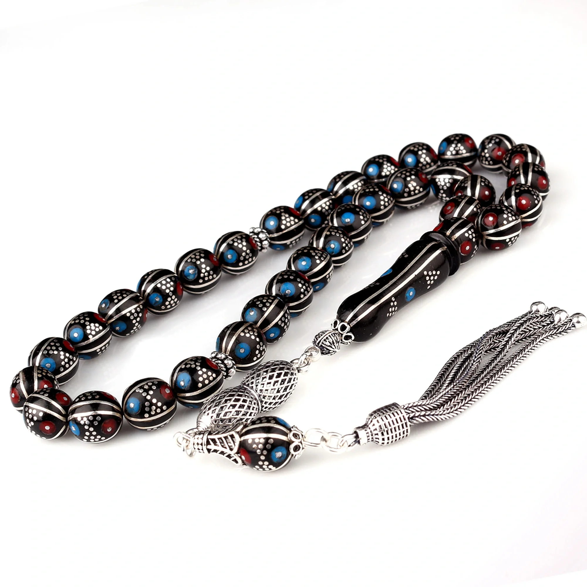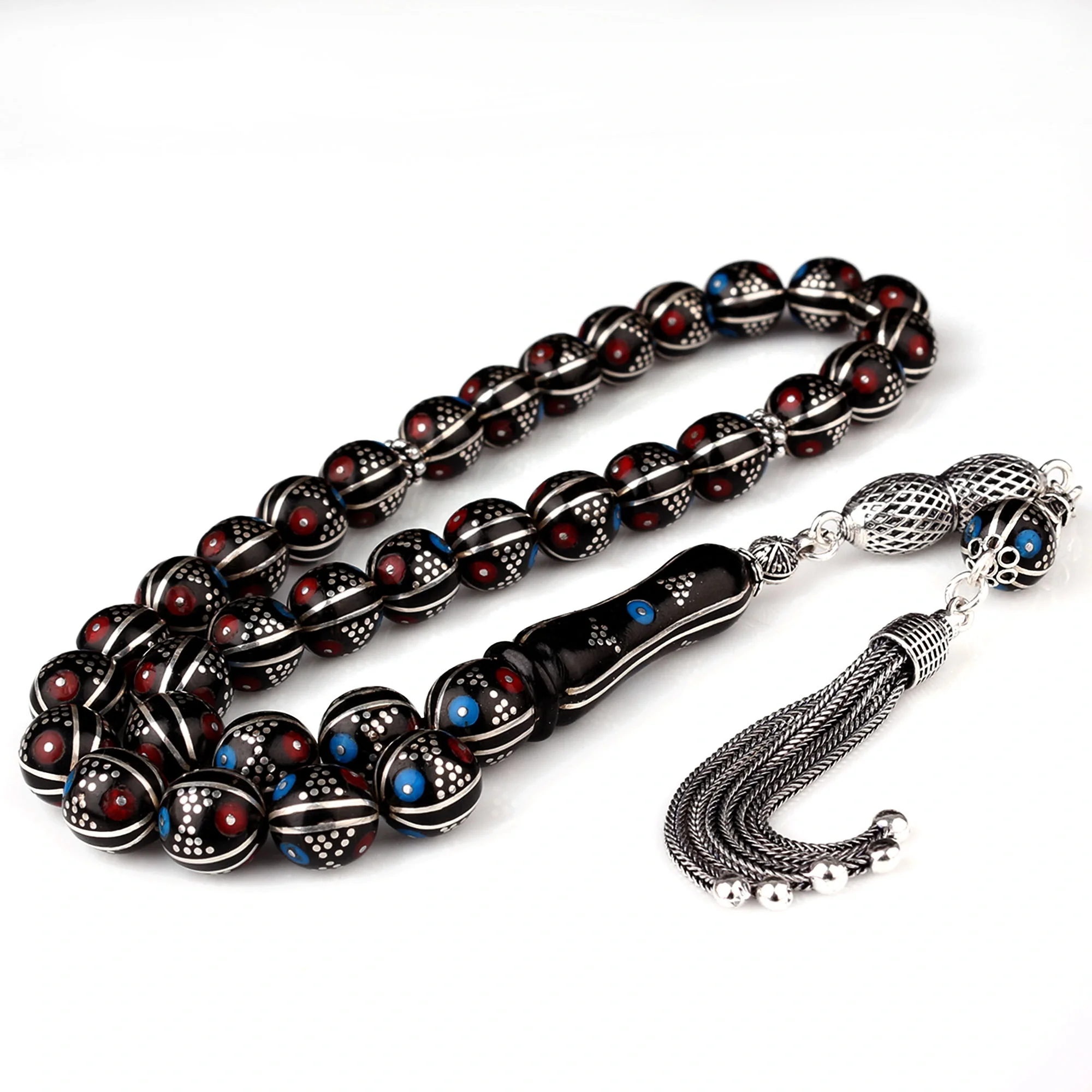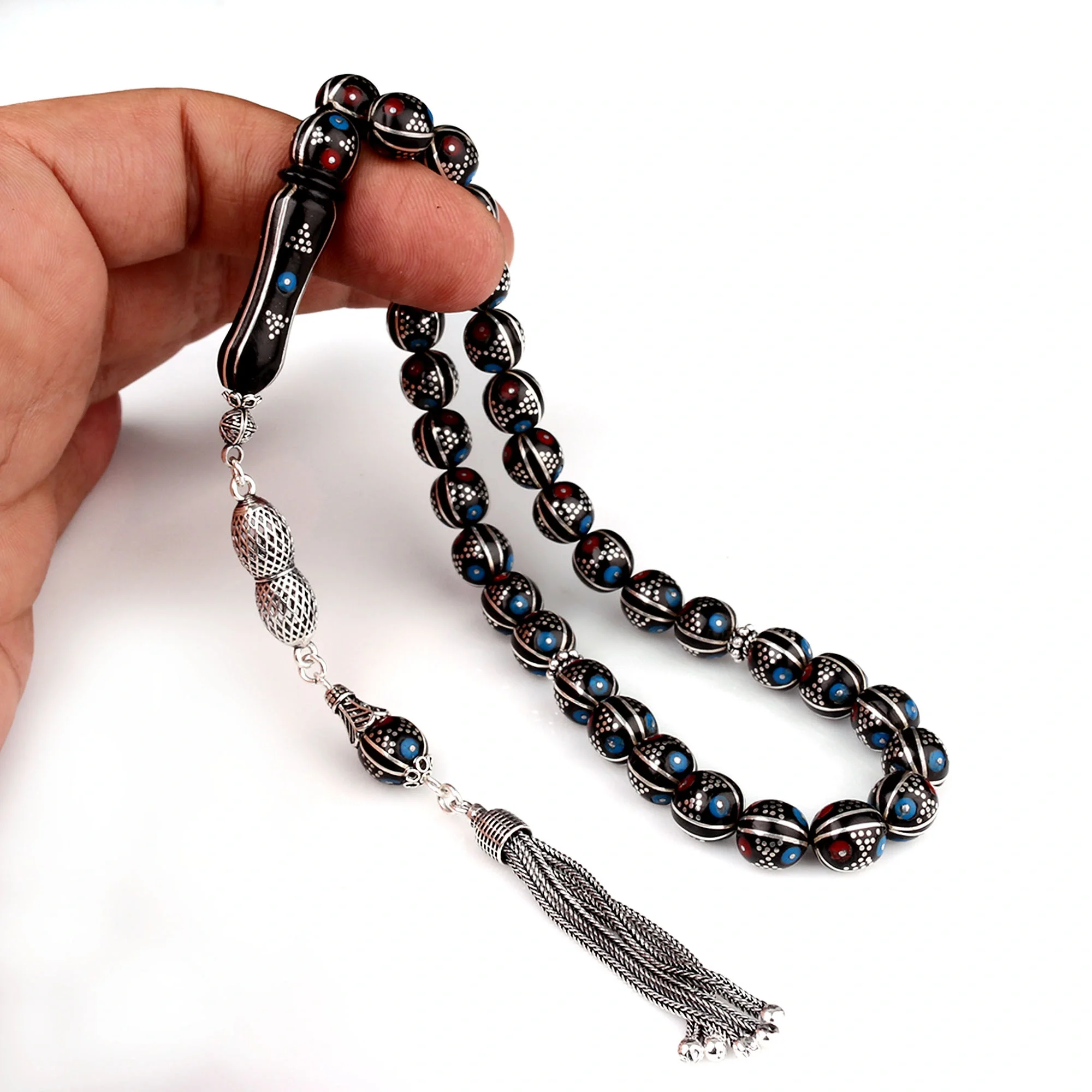 Kırmızı Mavi Mineli Erzurum Oltu Taşı 925 Ayar Gümüş Püsküllü Tesbih Hakkında