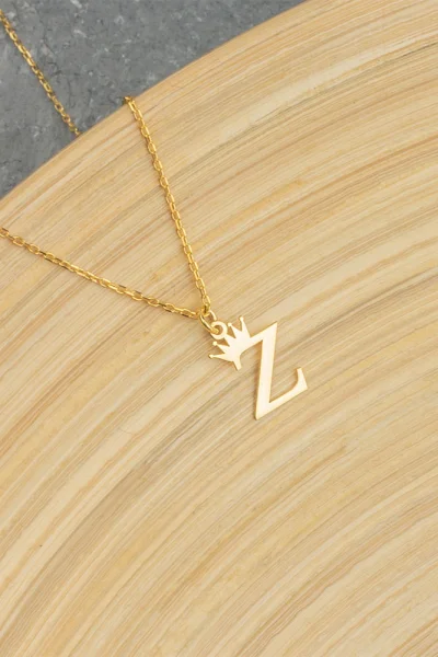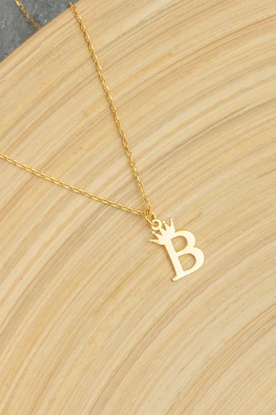 925 Ayar Gümüş Kişiselleştirilebilir Taçlı Harfli Kolye