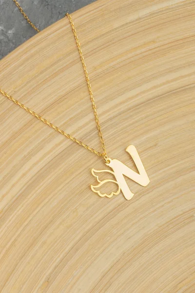 925 Ayar Gümüş Kişiselleştirilebilir Kanatlı Harfli Kolye