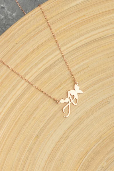 925 Ayar Gümüş Kişiye Özel Kalpli Ve Kelebekli Harf Kolye