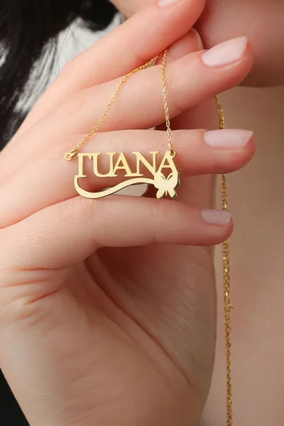 925 Ayar Gümüş Kişiye Özel İsimli Kelebekli Kolye