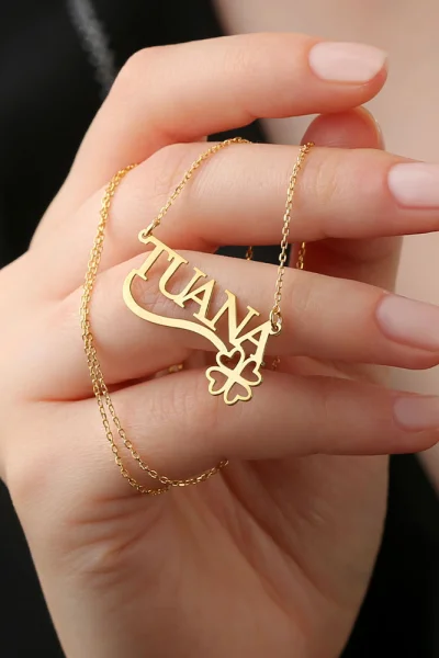 925 Ayar Gümüş Kişiye Özel İsimli Yoncalı Kolye