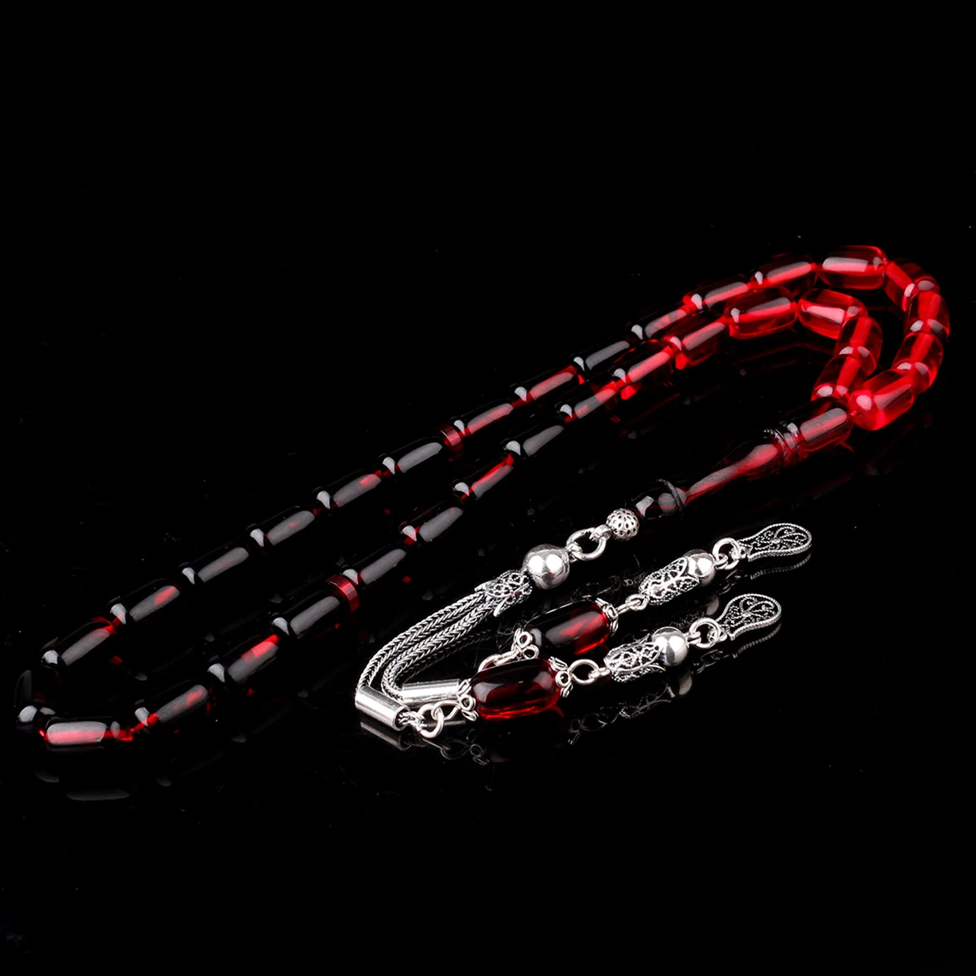 Süzme Renk Kapsül Kesim 925 Ayar Gümüş Püsküllü Ateş Kehribar Tesbih Hakkında