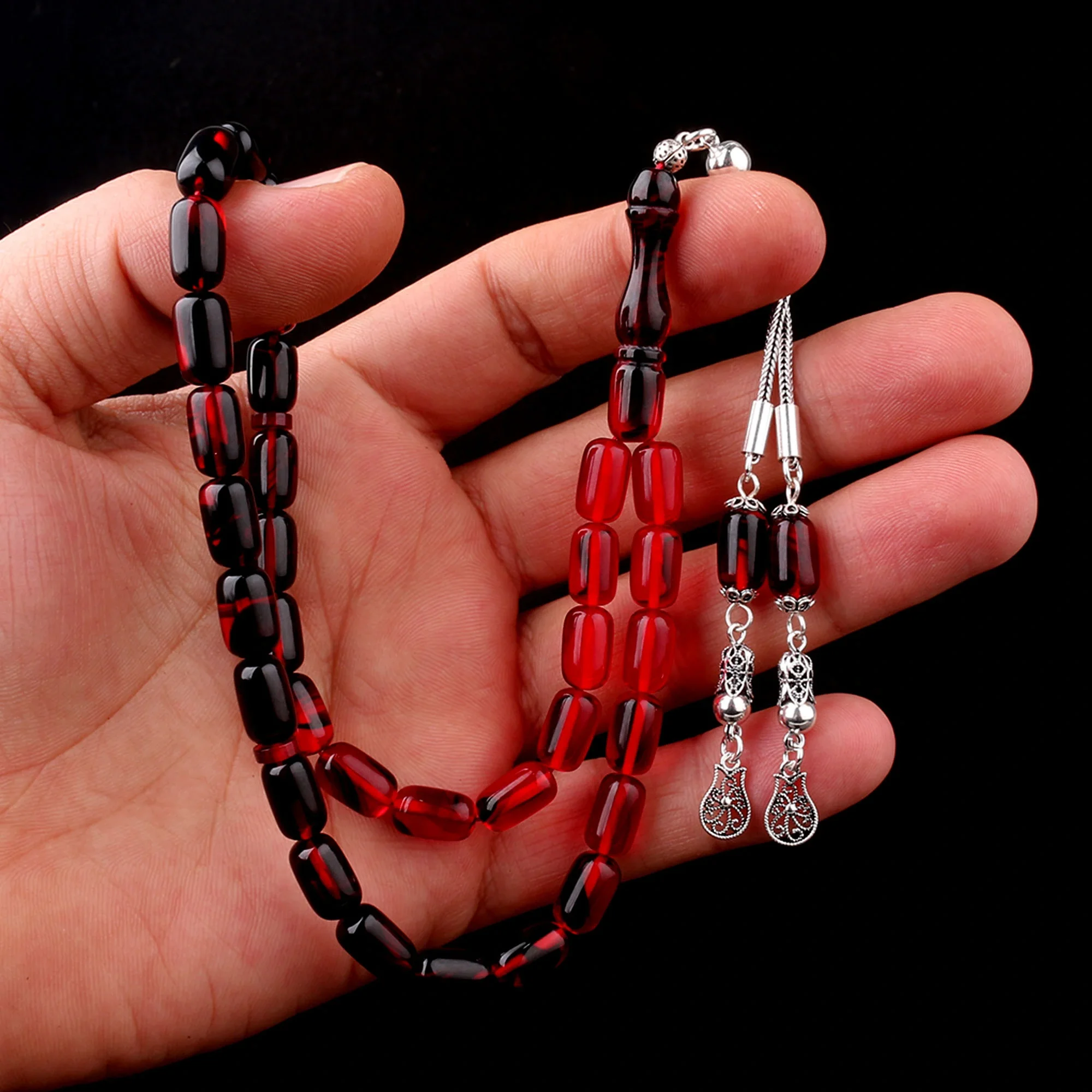 Ürün Özellikleri·Tane Boyu: 7x 11 mm·İmameden Uzunluk : 23,5 cm·İmame Boyu : 5 cm·Tam Boy : 33 cm·Renk : Kırmızı Siyah