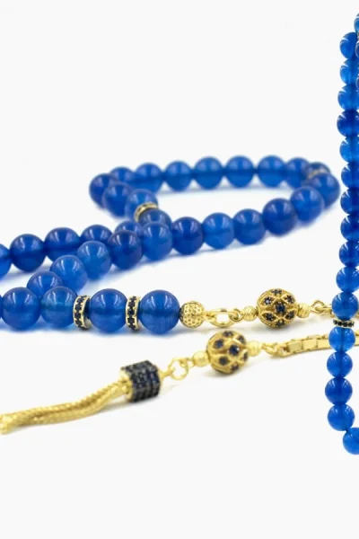 ALTIN KAPLAMA GÜMÜŞ PÜSKÜLLÜ CEYT TAŞI TESBİH