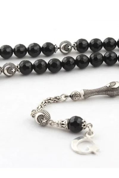 Onix Taşı Ayyıldız Model Gümüş Püsküllü Tesbih