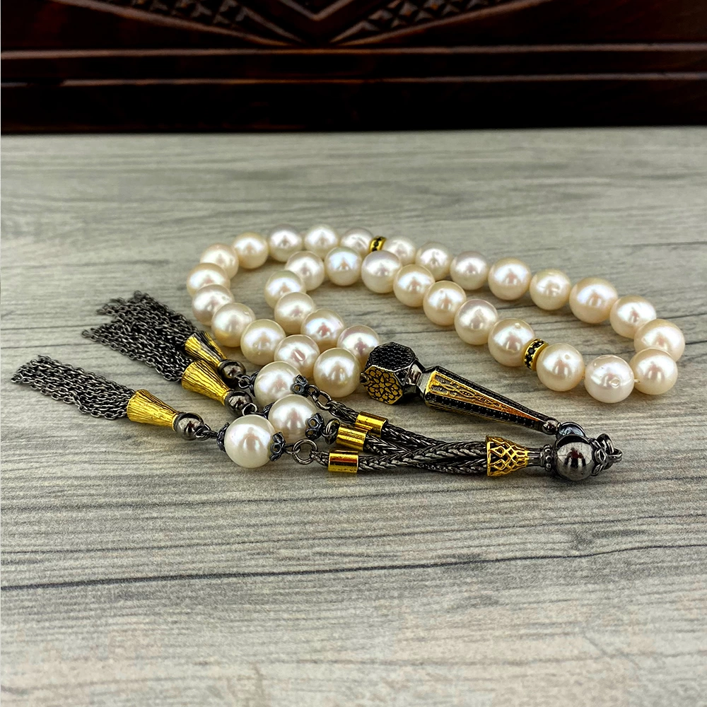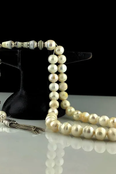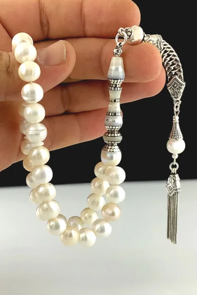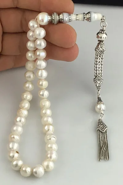 ÖZEL TASARIM GÜMÜŞ NAKKAŞ İMAME İNCİ TAŞI TESBİH