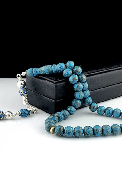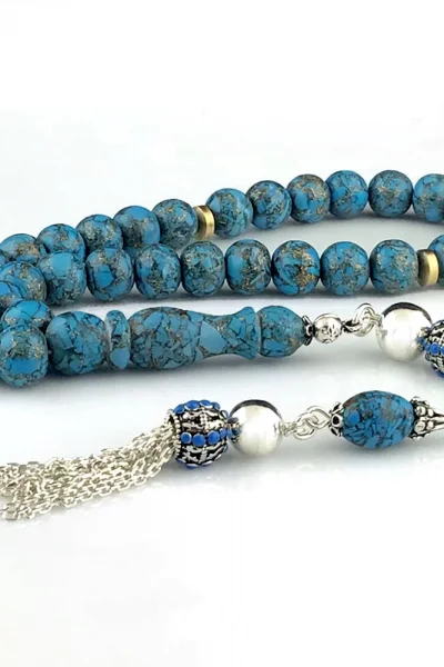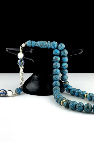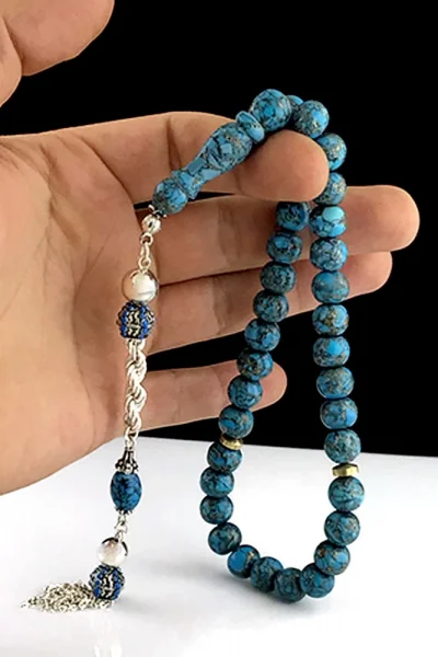 Özel Tasarım Gümüş Püsküllü Turkuaz Taşlı Tesbih