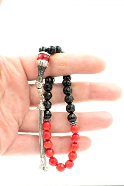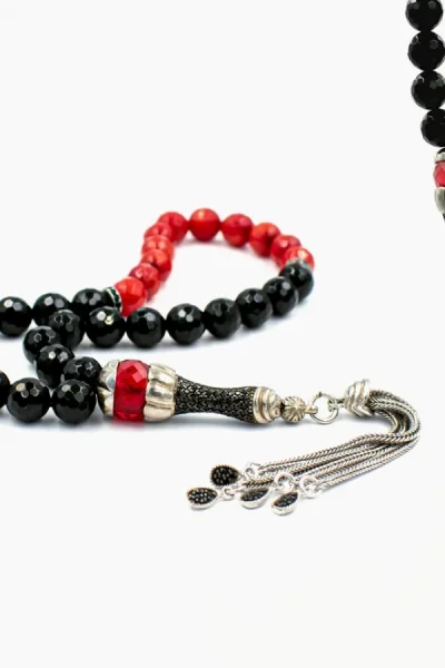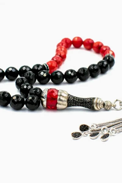 ÖZEL TASARIM İMAME VE PÜSKÜLLÜ KIRMIZI SİYAH ONIX TAŞLI TESBİH