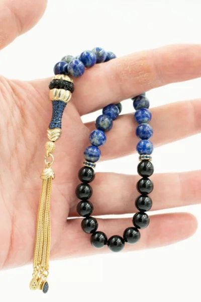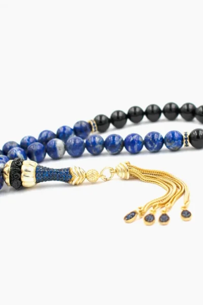 ÖZEL TASARIM İMAME VE PÜSKÜLLÜ LAPİS ONIX TAŞLI TESBİH