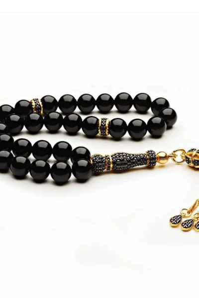 Özel Tasarım Orjinal Onix Taşı Tesbih Gümüş Püsküllü