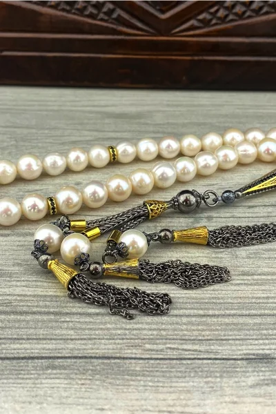 Zirkon Taşlı Altın Kaplama Püsküllü Sedef Tesbih