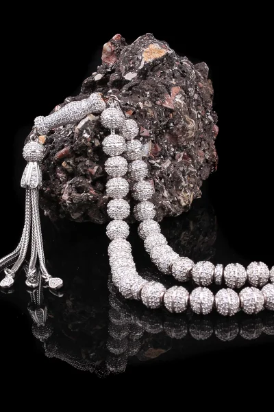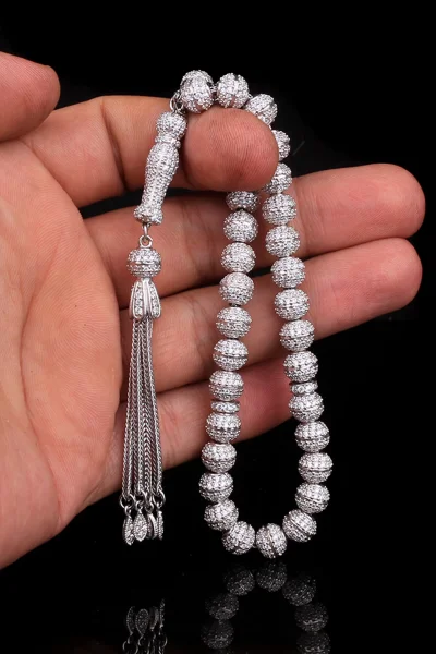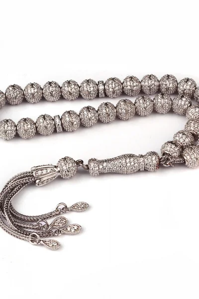 ZİRKON TAŞ İŞLEMELİ TAMAMI 925 AYAR GÜMÜŞ TESBİH
