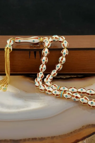 KIRMIZI BEYAZ RENK MİNELİ ZİRKON TAŞLI 925 AYAR GÜMÜŞ TESBİH