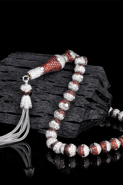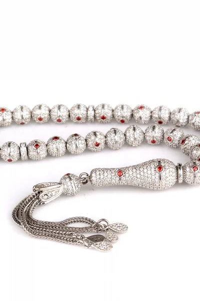 KIRMIZI BEYAZ ZİRKON TAŞLI 925 AYAR GÜMÜŞ TESBİH