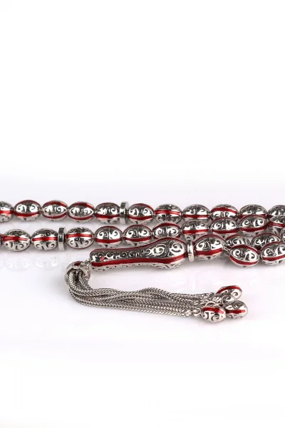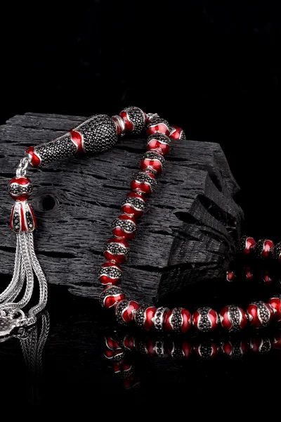 KIRMIZI RENK MİNELİ 925 AYAR GÜMÜŞ TESBİH