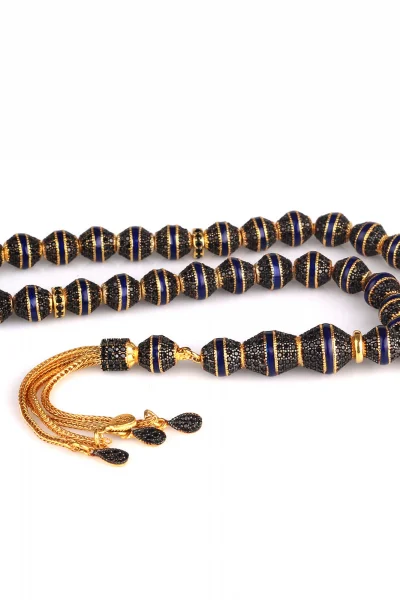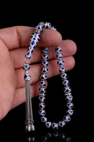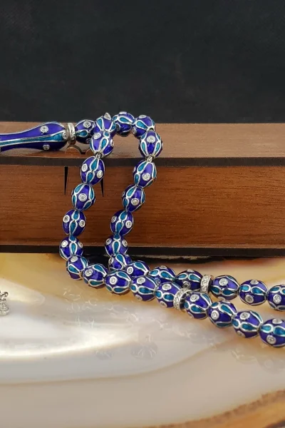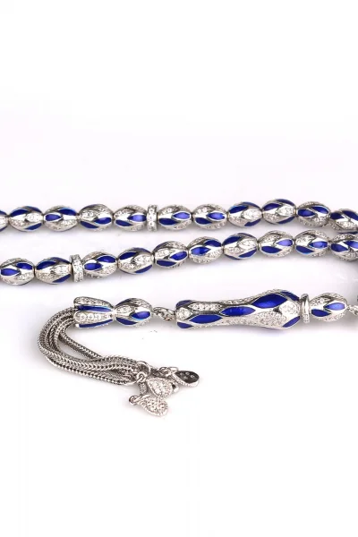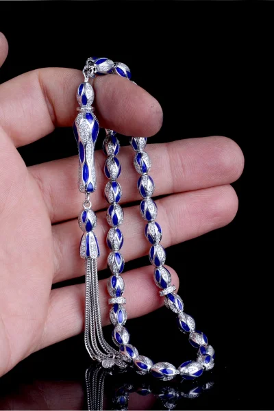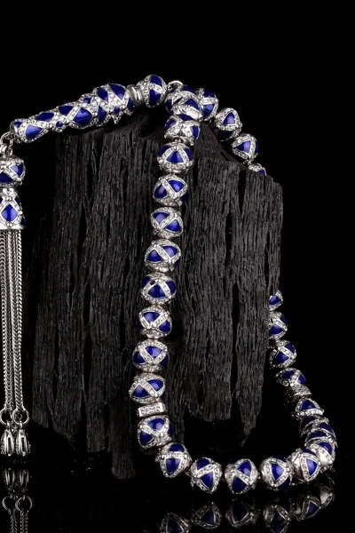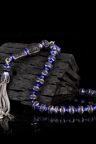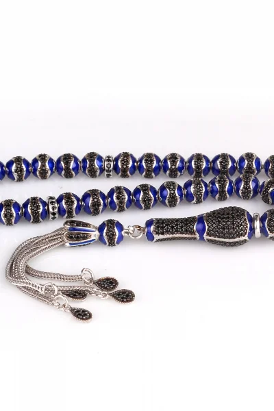 LACİVERT RENK MİNELİ ZİRKON TAŞLI 925 AYAR GÜMÜŞ TESBİH