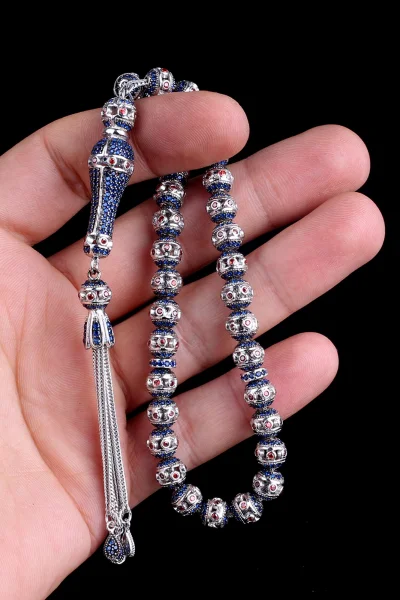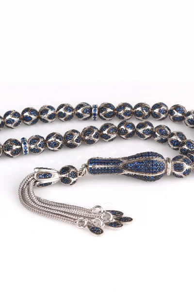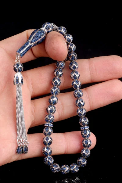 LACİVERT RENK ZİRKON TAŞLI 925 AYAR GÜMÜŞ TESBİH