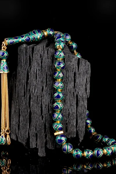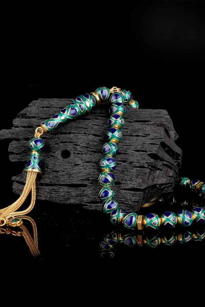 LACİVERT YEŞİL RENK MİNELİ 925 AYAR GÜMÜŞ TESBİH