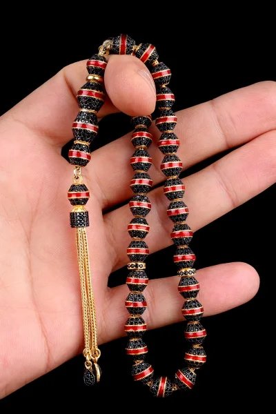 FUTBOL TOPU MODEL ZİRKON TAŞLI KIRMIZI MİNELİ 925 AYAR GÜMÜŞ TESBİH