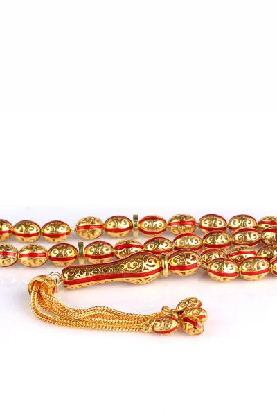 ARPA KESİM ALTIN KAPLAMA KIRMIZI RENK MİNELİ 925 AYAR GÜMÜŞ TESBİH
