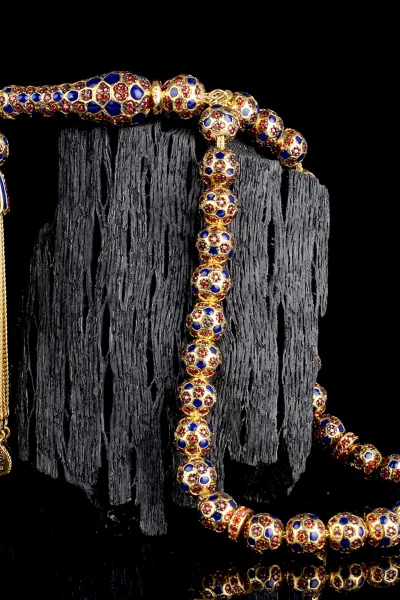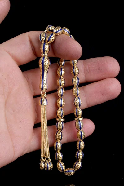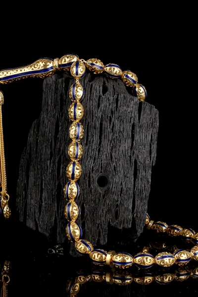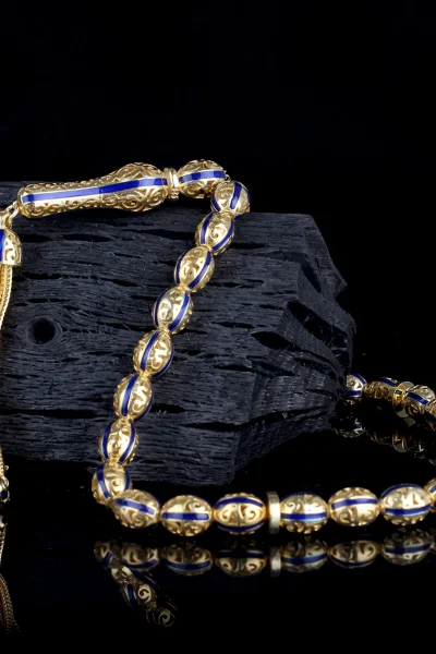 ARPA KESİM ALTIN KAPLAMA LACİVERT RENK MİNELİ 925 AYAR GÜMÜŞ TESBİH