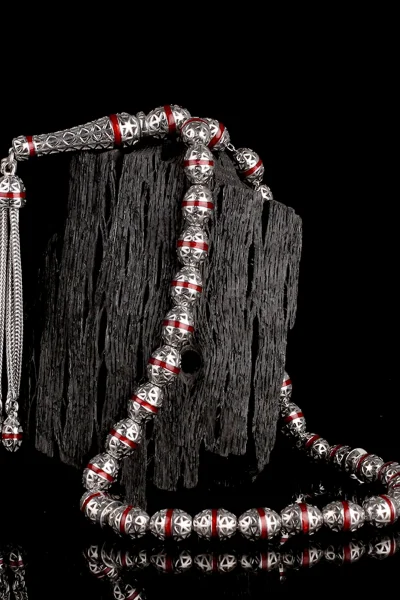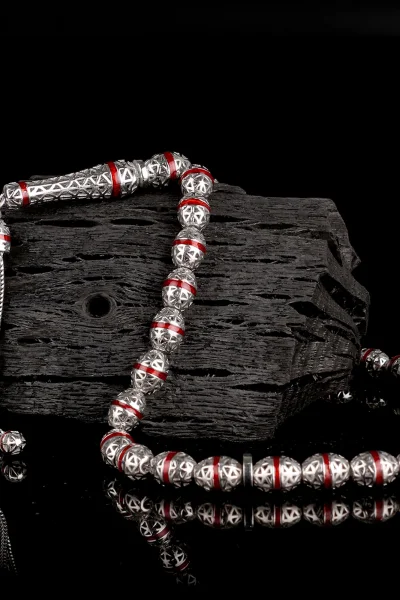 ARPA KESİM KIRMIZI RENK MİNELİ 925 AYAR GÜMÜŞ TESBİH