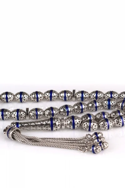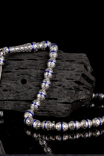 ARPA KESİM LACİVERT RENK MİNELİ 925 AYAR GÜMÜŞ TESBİH