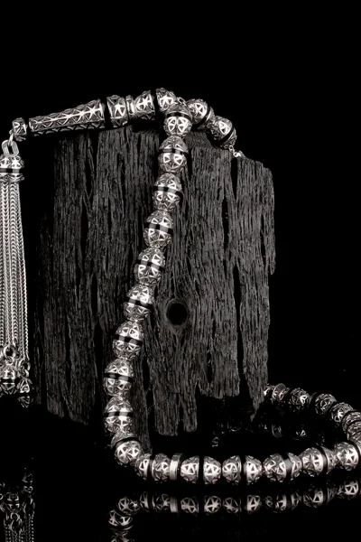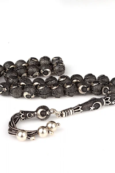 Gümüş Ay Yıldız Taneli Ay Yıldız Püsküllü Tesbih