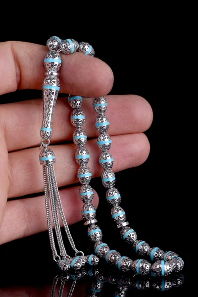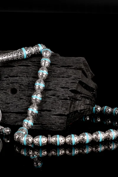ARPA KESİM TURKUAZ RENK MİNELİ 925 AYAR GÜMÜŞ TESBİH