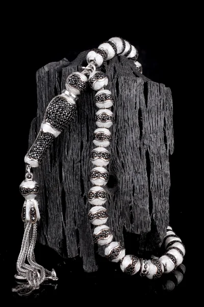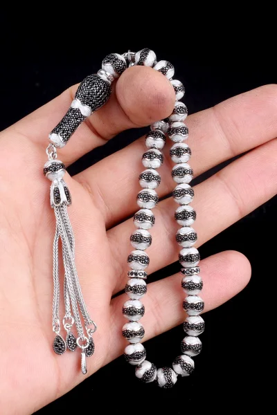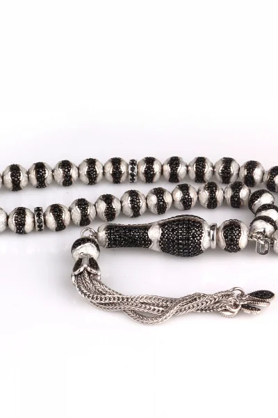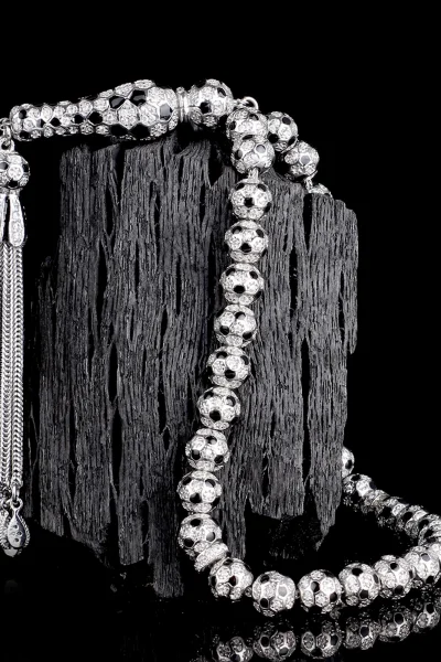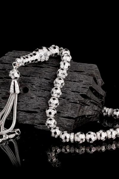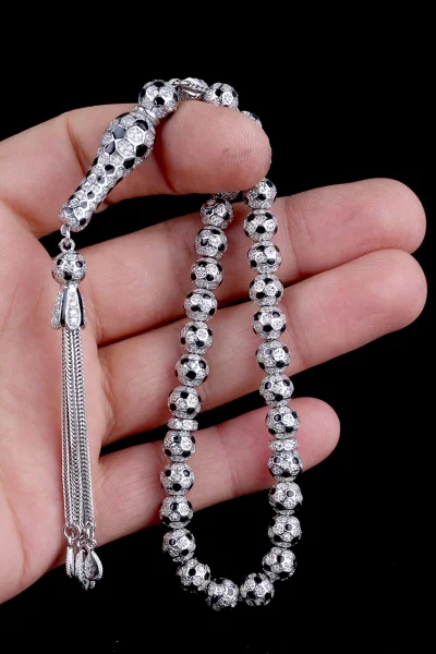 FUTBOL TOPU MODEL ZİRKON TAŞLI SİYAH MİNELİ 925 AYAR GÜMÜŞ TESBİH