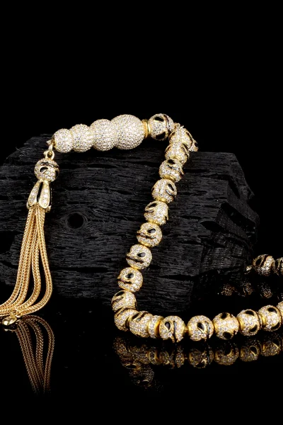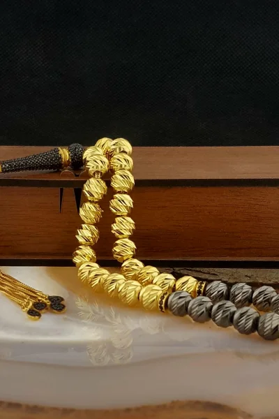 ALTIN KAPLAMALI DESENLİ MODEL 925 AYAR GÜMÜŞ TESBİH