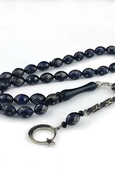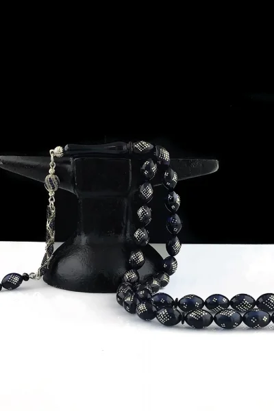 GÜMÜŞ İŞLEMELİ ÖZEL TASARIMA TEŞ KEHRİBAR TESBİH