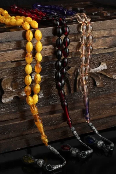 Bafon Kazaz Püsküllü 3 lü Kehribar Tesbih Seti