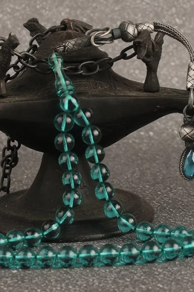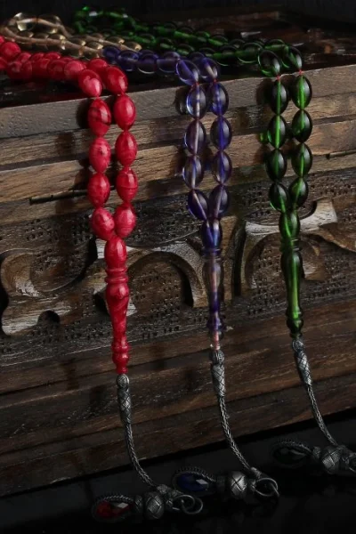 GÜMÜŞ KILIÇ PÜSKÜLLÜ YEŞİL RENK SIKMA KEHRİBAR TESBİH