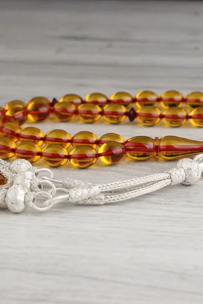 Ateş Kehribar Tesbih 1000 Ayar Gümüş Kazaz Püsküllü