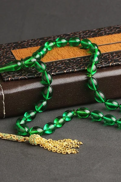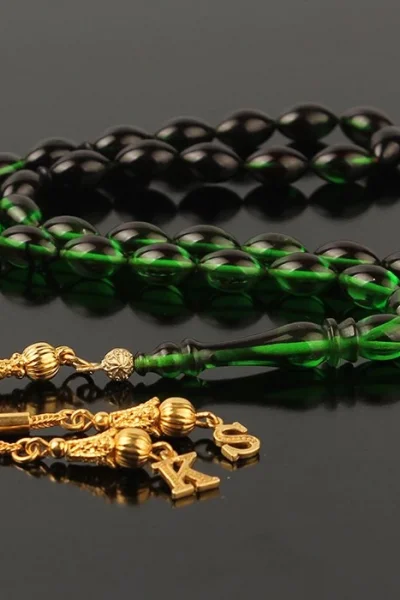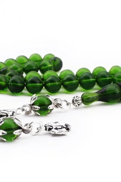 925 AYAR GÜMÜŞ SIĞIRCIK KESİM YEŞİL RENK SIKMA KEHRİBAR TESBİH