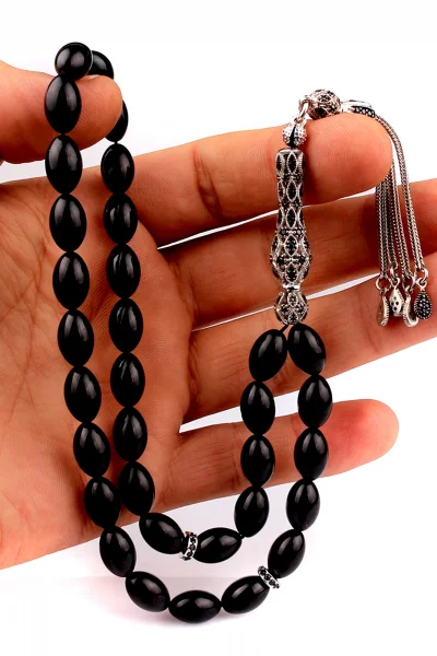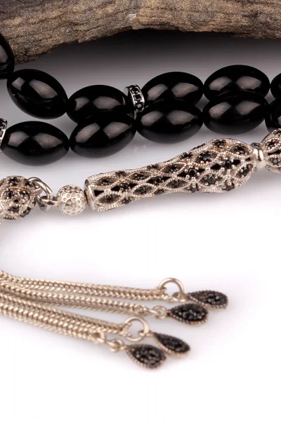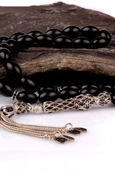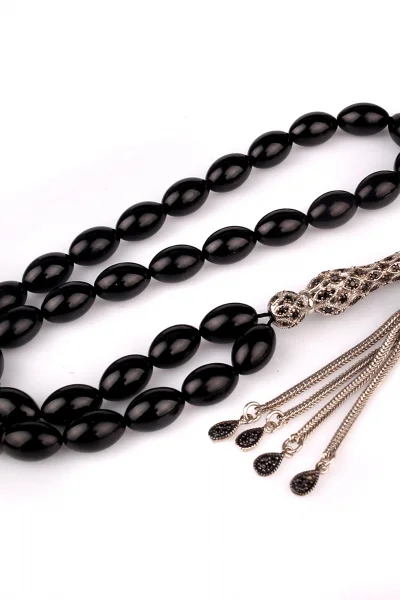 925 AYAR GÜMÜŞ ZİRKON TAŞLI PÜSKÜLLÜ ATEŞ KEHRİBAR TESBİH