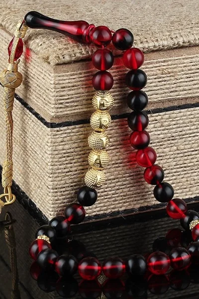 ALTIN KAPLAMALI GÜMÜŞ PÜSKÜLLÜ ATEŞ KEHRİBAR TESBİH