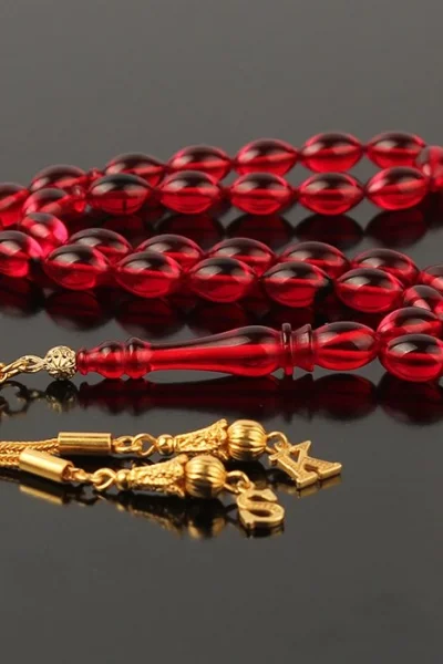 Altın Kaplama Gümüş Püsküllü Harfli Kehribar Tesbih