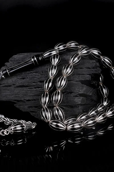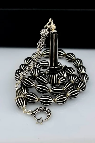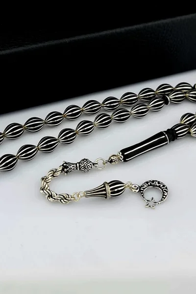 1000 Ayar Gümüş Kazaziye Püsküllü Sade Erzurum Oltu Taşı Tesbih
