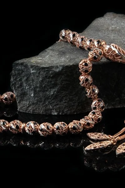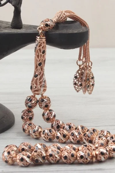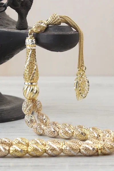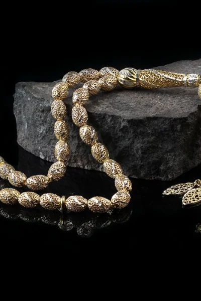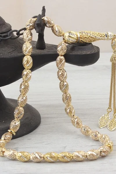 Telkari Model Altın Kaplamalı 925 Ayar Gümüş Tesbih
