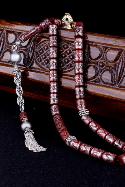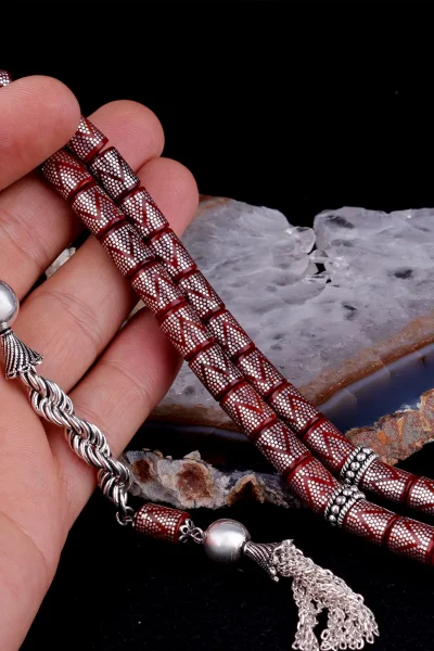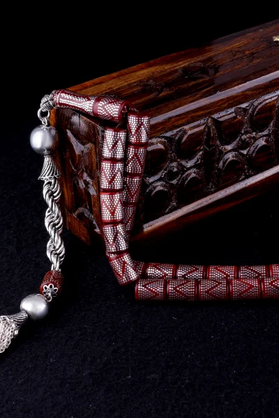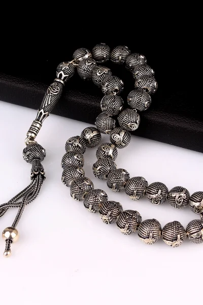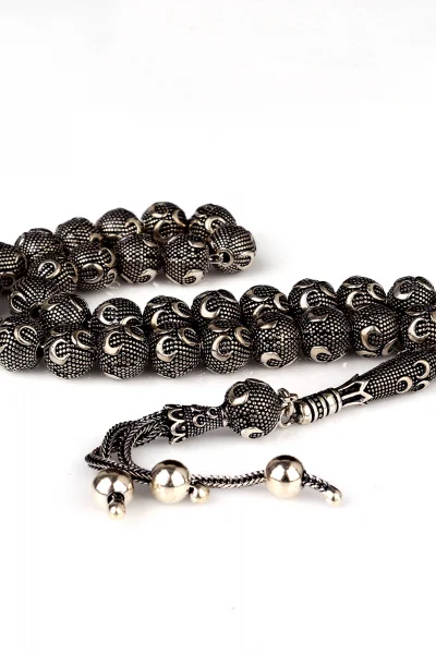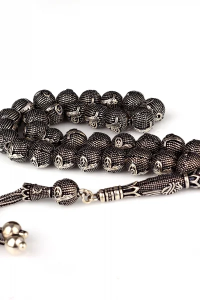 USTA EL İŞÇİLİĞİ YOĞUN GÜMÜŞ İŞLEMELİ KESME MODEL KUKA TESBİH