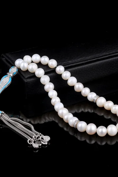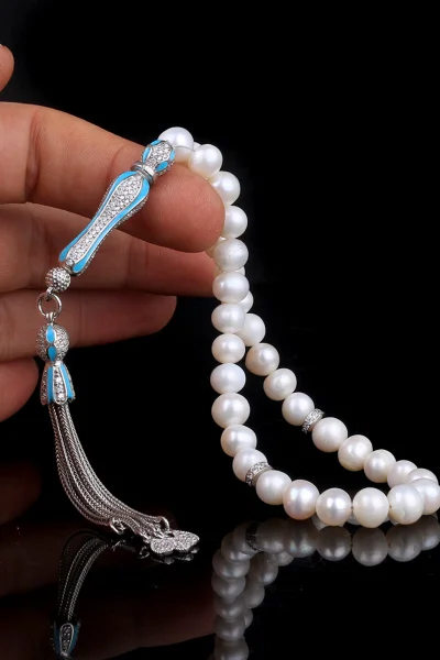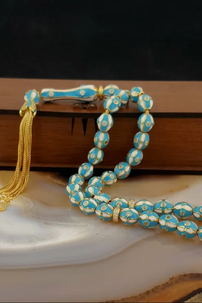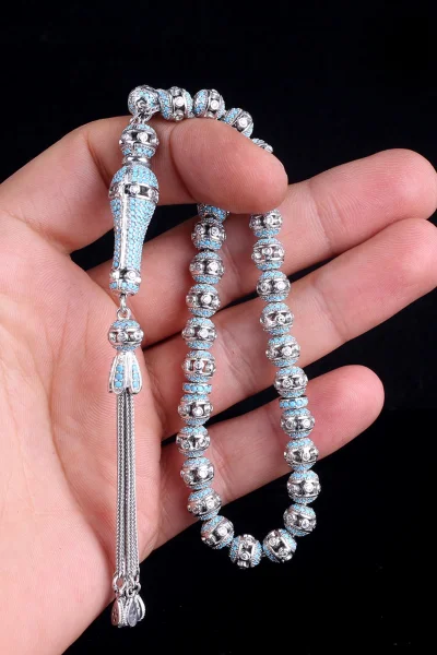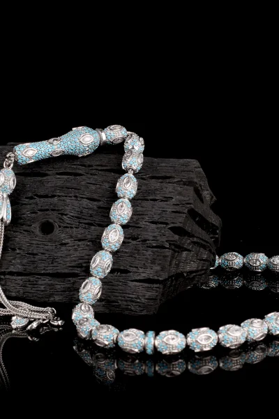 TURKUAZ BEYAZ RENK MİNELİ ZİRKON TAŞLI 925 AYAR GÜMÜŞ TESBİH