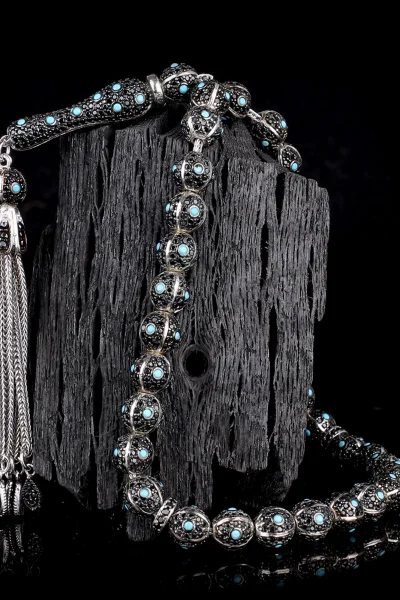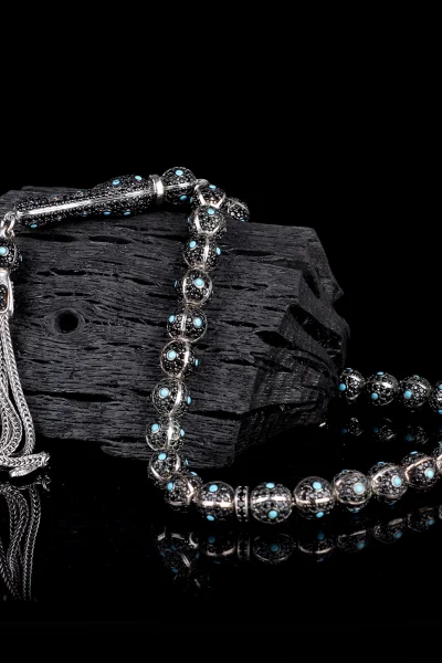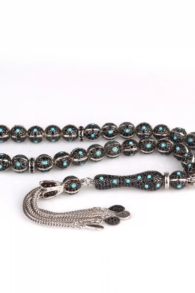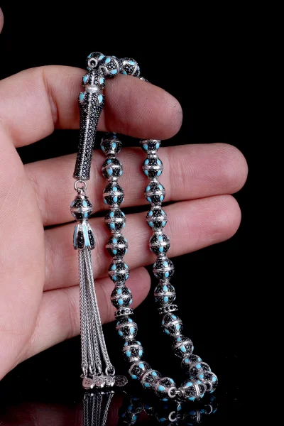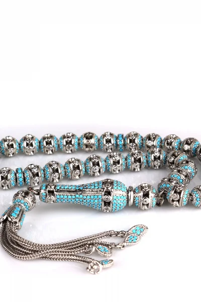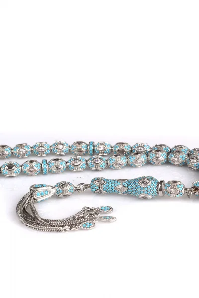 TURKUAZ MİKRO ZİRKON TAŞLI 925 AYAR GÜMÜŞ TESBİH