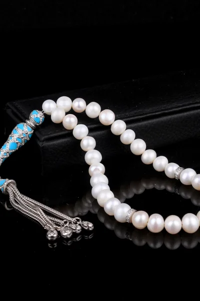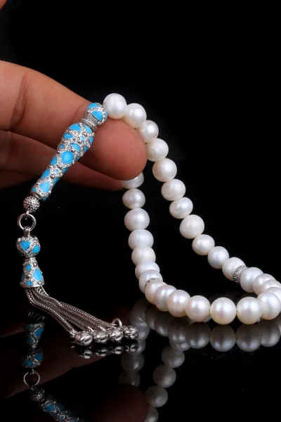 TURKUAZ MİNE ZİRKON TAŞLI GÜMÜŞ SET İNCİ TAŞLI TESBİH